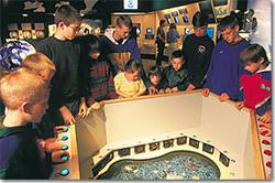There was pretty cool flow tank in there too that the kids were really interested in. So this tank that you kind of hover over has little sail boats floating on a few inches of water and all around the water are what reminded me of those little computer fans...LOL So the part of this flow tank you kind of hover over has buttons to press to start which ever numbered and colored button you pressed! The kids really enjoyed that interactive station!! LOL Also a gift shop area to buy souvenirs and clothing!